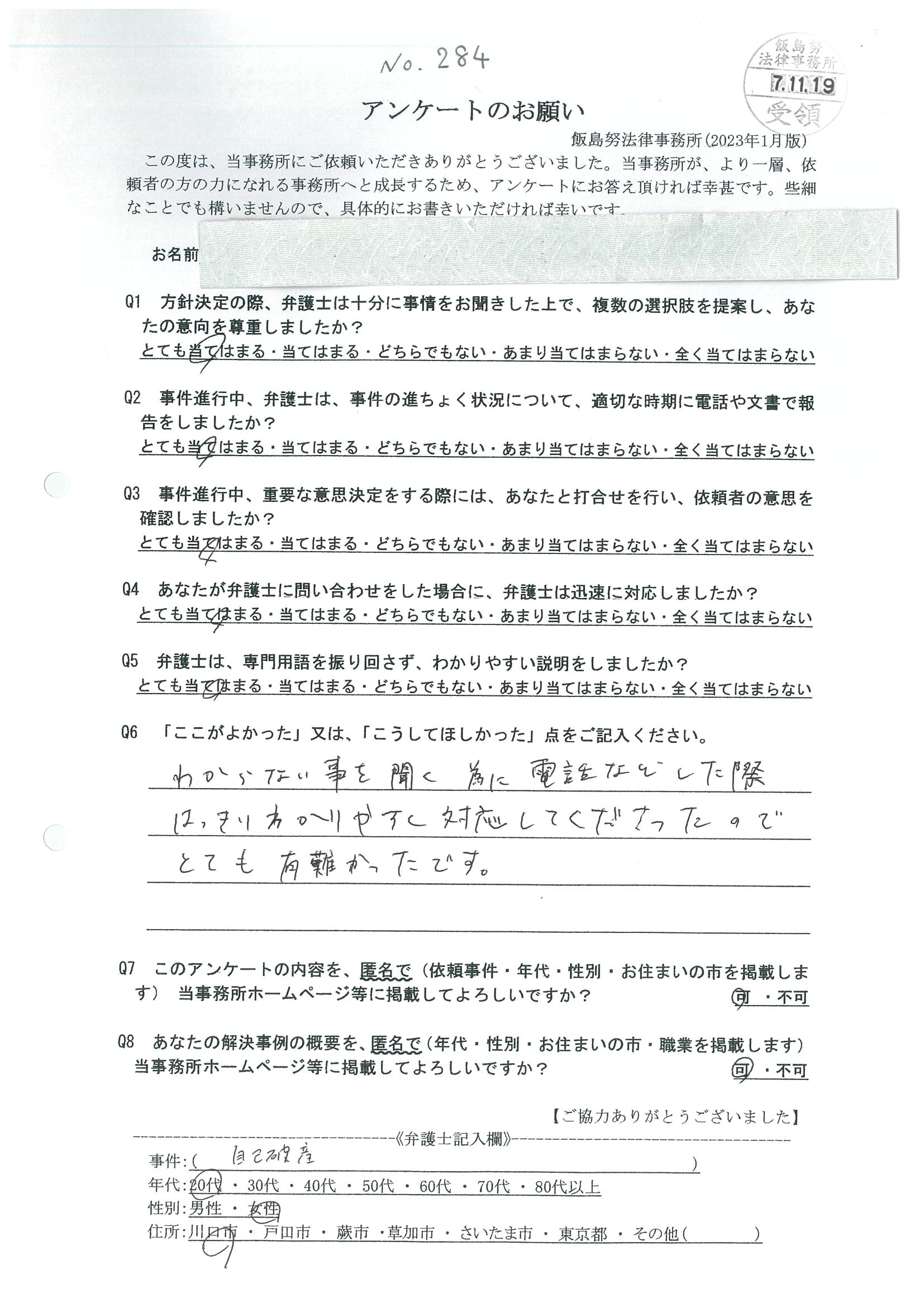 <No.284 自己破産 20代 女性 川口市在住>